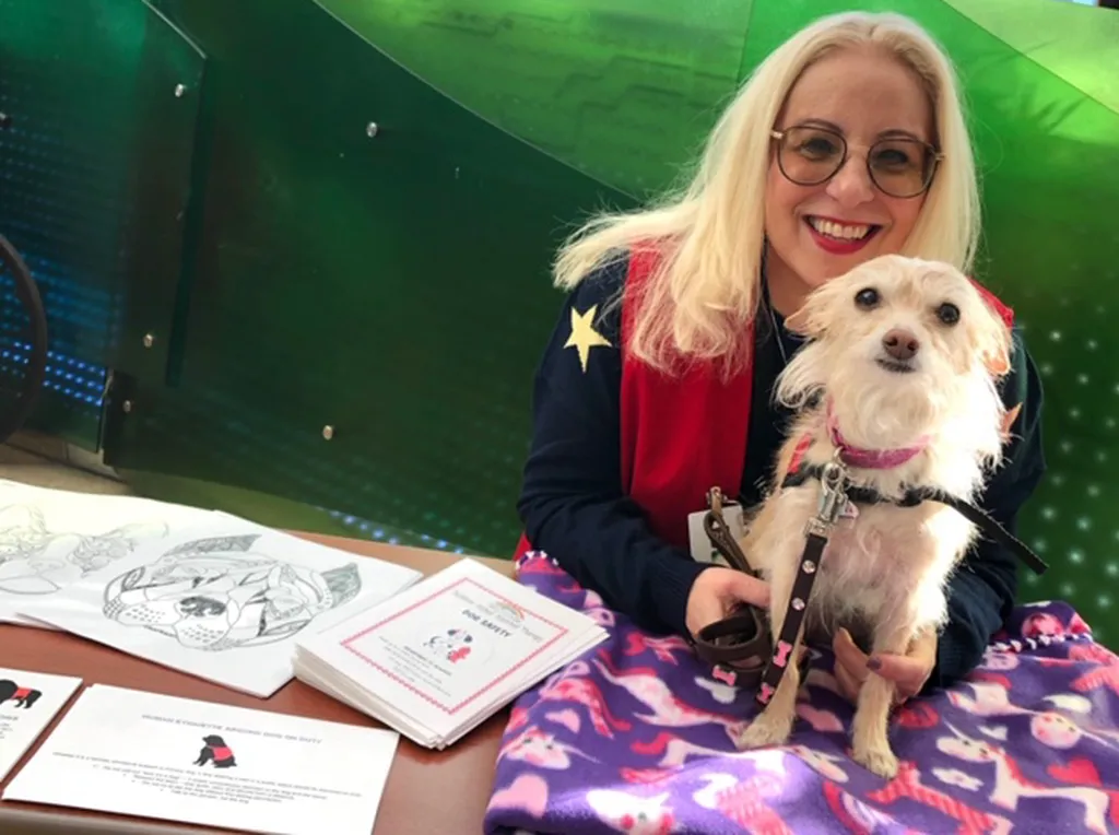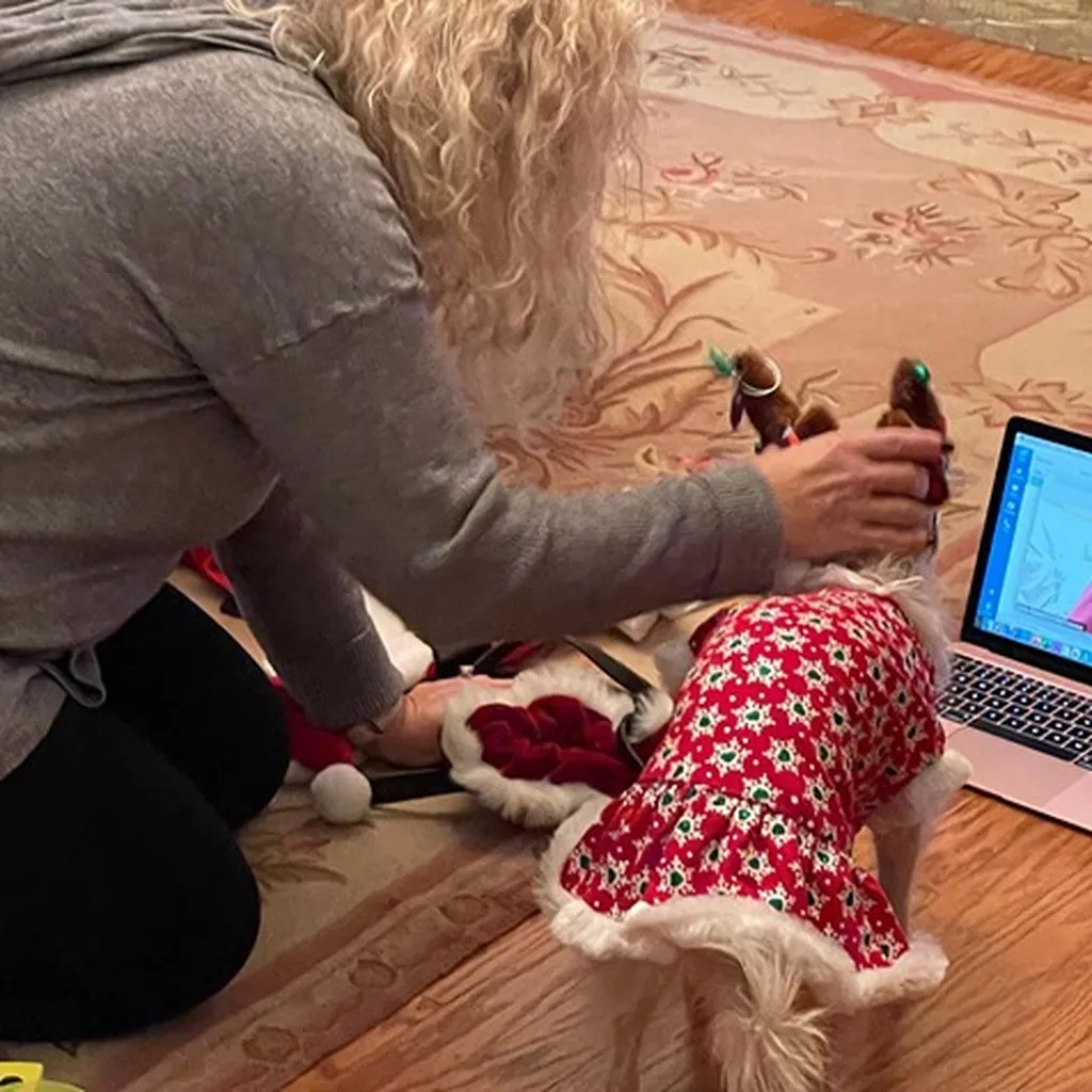 My wife Robin and our dog Hazel doing animal assisted activities remotely during the pandemic, she would do a fashion show for the kids and Lurie’s Children’s Hospital, Chicago